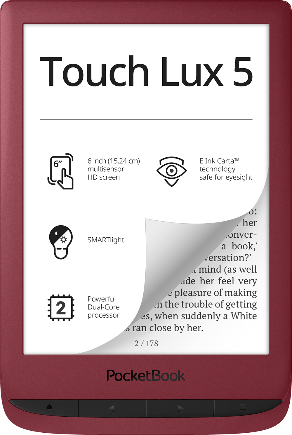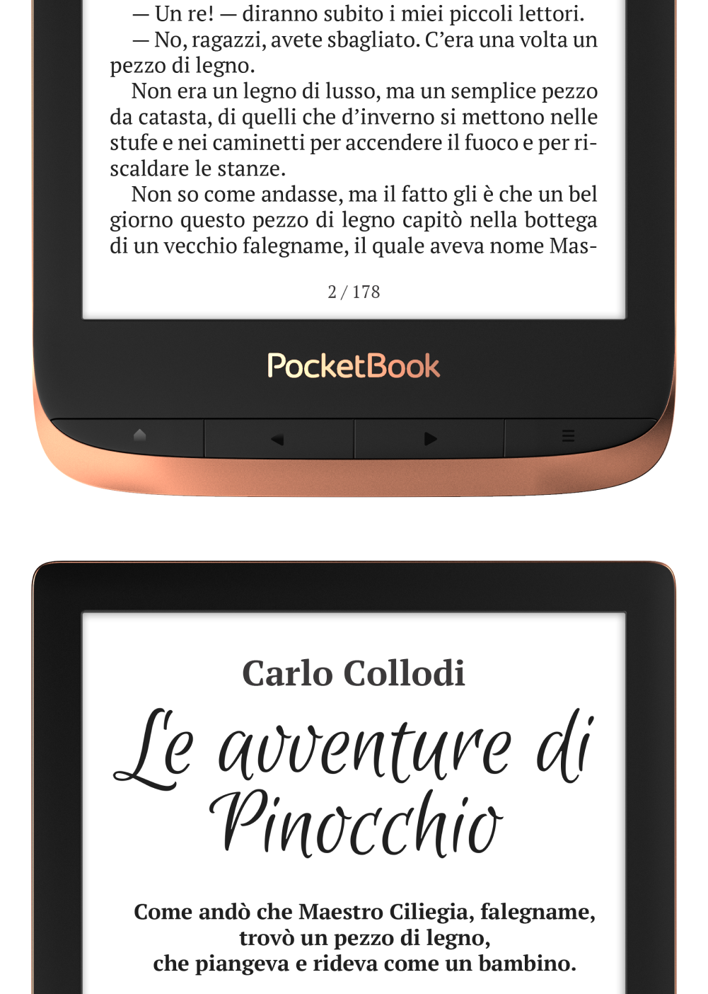Os PocketBook de 6 polegadas médios têm um peso reduzido recorde de apenas 155 g. E o design dos dispositivos PocketBook recebeu diversos prémios RedDot de prestígio.